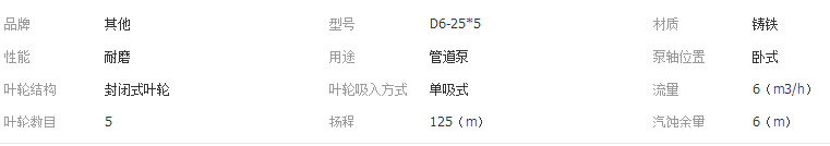 D6-25-5多级单吸离心泵矿用多级泵,水泵厂家,水泵配件龙岩水泵