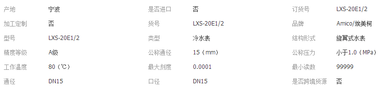 埃美柯水表LXS-20E1/2 旋翼湿式冷水表 家用水表螺纹水表 DN15