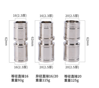 滑紧件直接等径异径全铜镀镍滑紧接头铝塑管PEX滑紧式直接管件