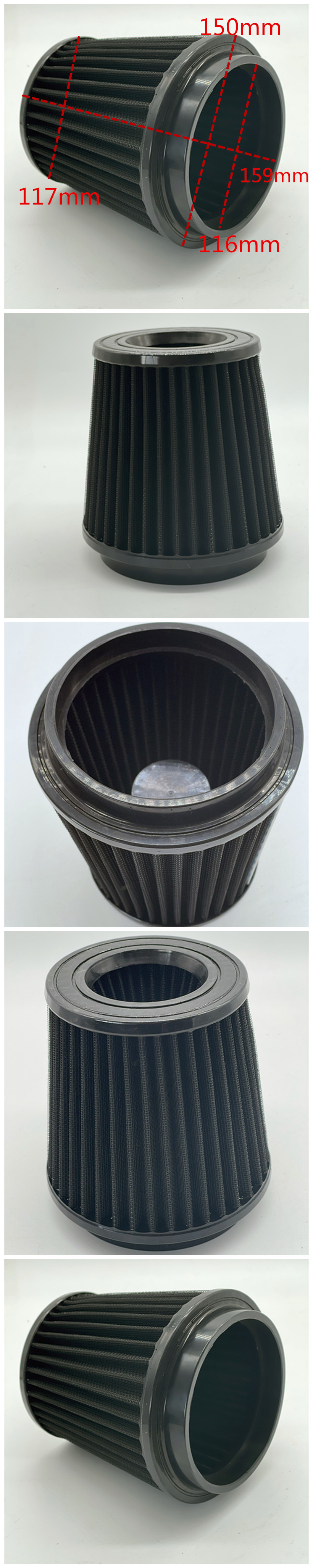描述:高流量空气滤芯可降低引擎进气的阻力,同时提高引擎运转时单位时间进气量及容积效率。半圆球形状蜂巢构造,可以将乱窜的气流往六个方向平均分散,让空气形成顺畅的流动。而内侧骨架的扇形部分,采用16支呈放射形状支架设计,这样的结构相对比较硬朗。如果将冬菇头破开,从圆弧形支架的断面可以清楚看见漏斗状的构造,这样的设计使香菇头内侧产生真空地带,可以强制性地吸入空气,如此一来扇形部分的面积完全不会浪费,让实际吸入面积变大。