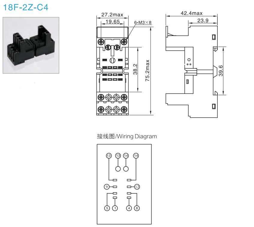 华博科技 小型继电器底座插座13F-4Z-C1创导 用于自动化控制电路