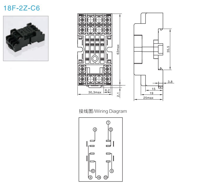定制 小型继电器插座 18F-2Z-A1继电器底座12A继电器插座规格齐