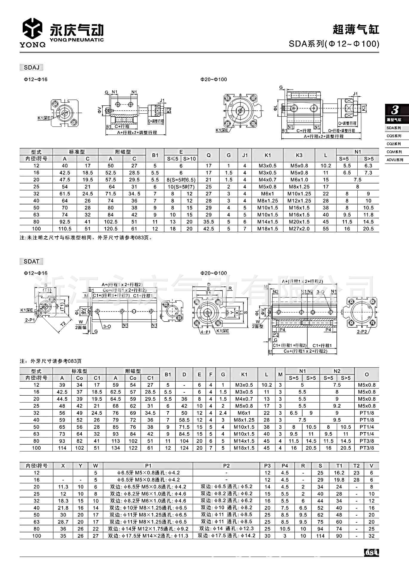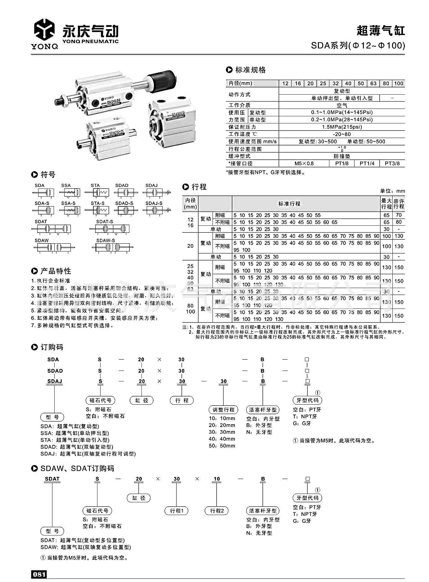 长期供应 SDA薄型气缸 100x50气缸 气动元件