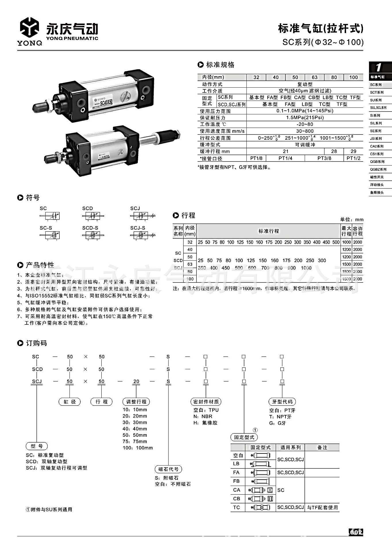 专业批发标准气缸 SC40x125气缸 SCD双出SCJ气缸 可调标准带磁缸