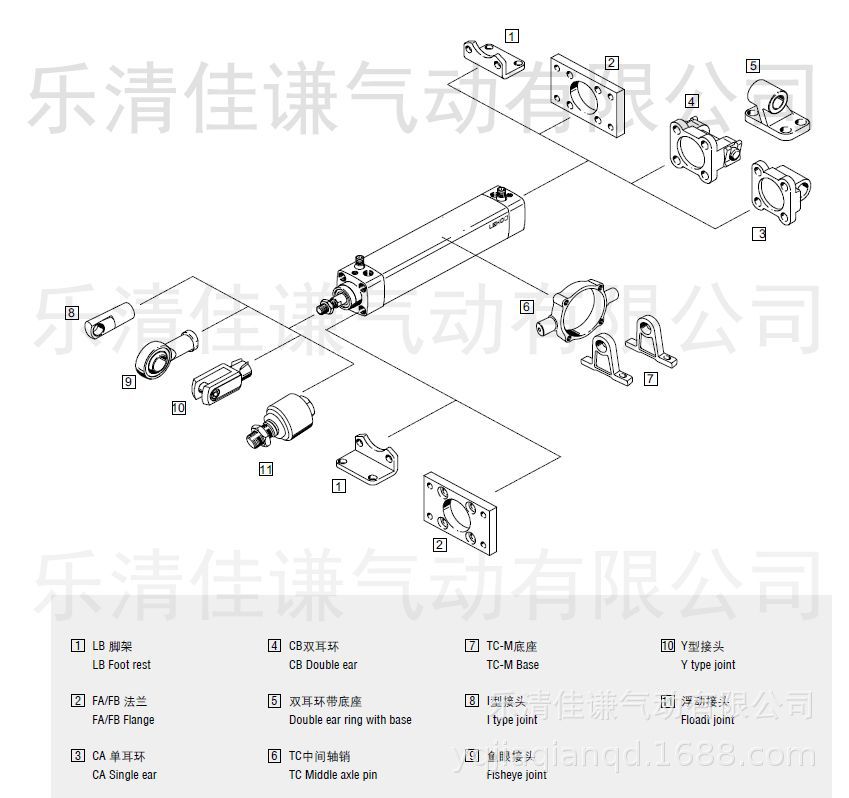 - 注:气缸附件由客户自由选择搭配详见下面参考图