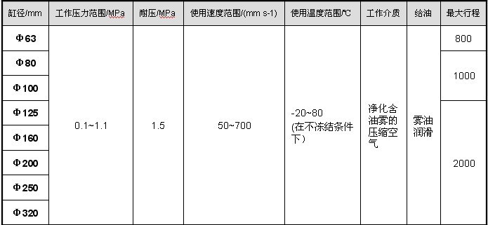 气缸主要技术参数