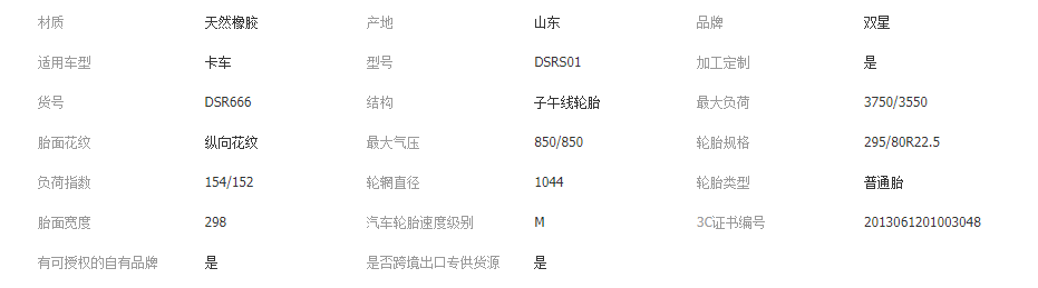 | 295/80R22.5 | 18 | 15.3 | 9 | 850/850 | 3750/3550 | 154/152 M | 1044 | 298 |