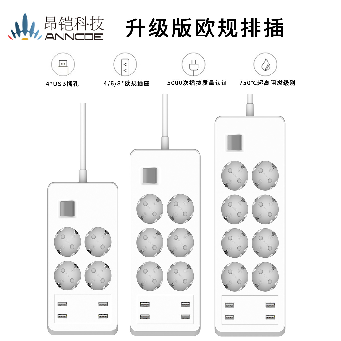 多功能一转四扩展电源插头插座德规USB插座欧规USB智能充电转换器