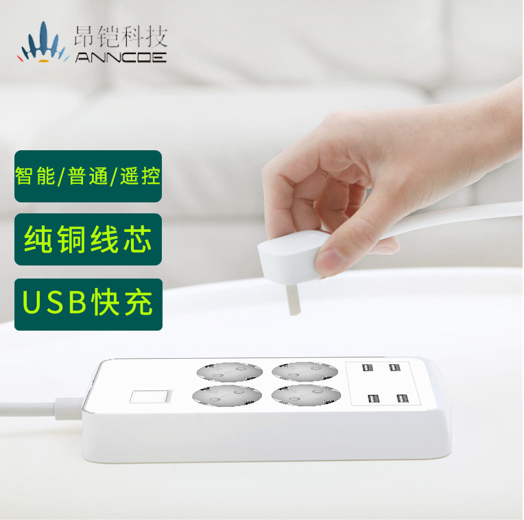 德国规格智能家居智能插座智能语音控制wifi智能排插4.8A4口USB
