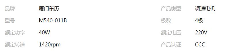 厦门东历M540-011B调速电机40W单相带刹车