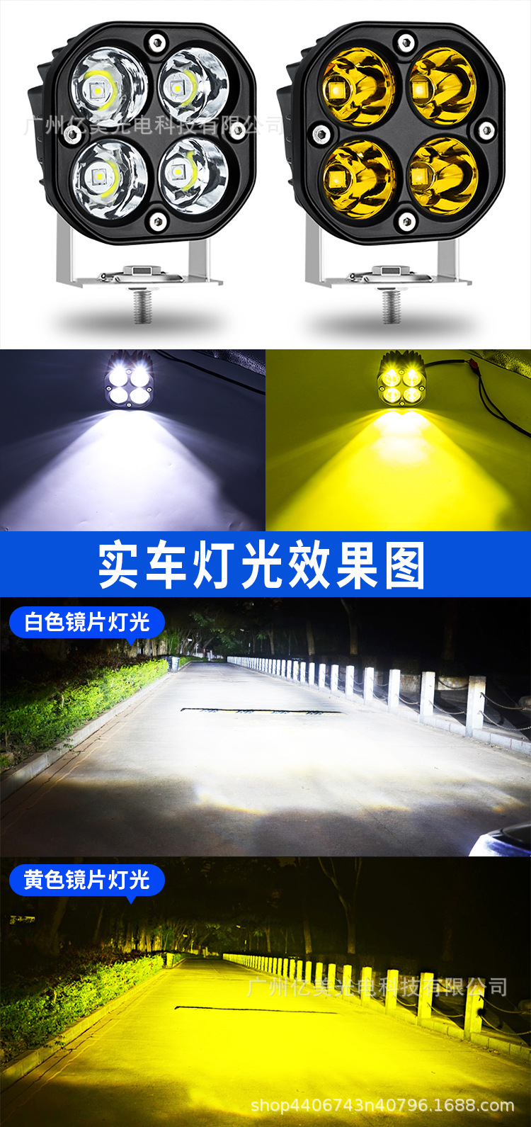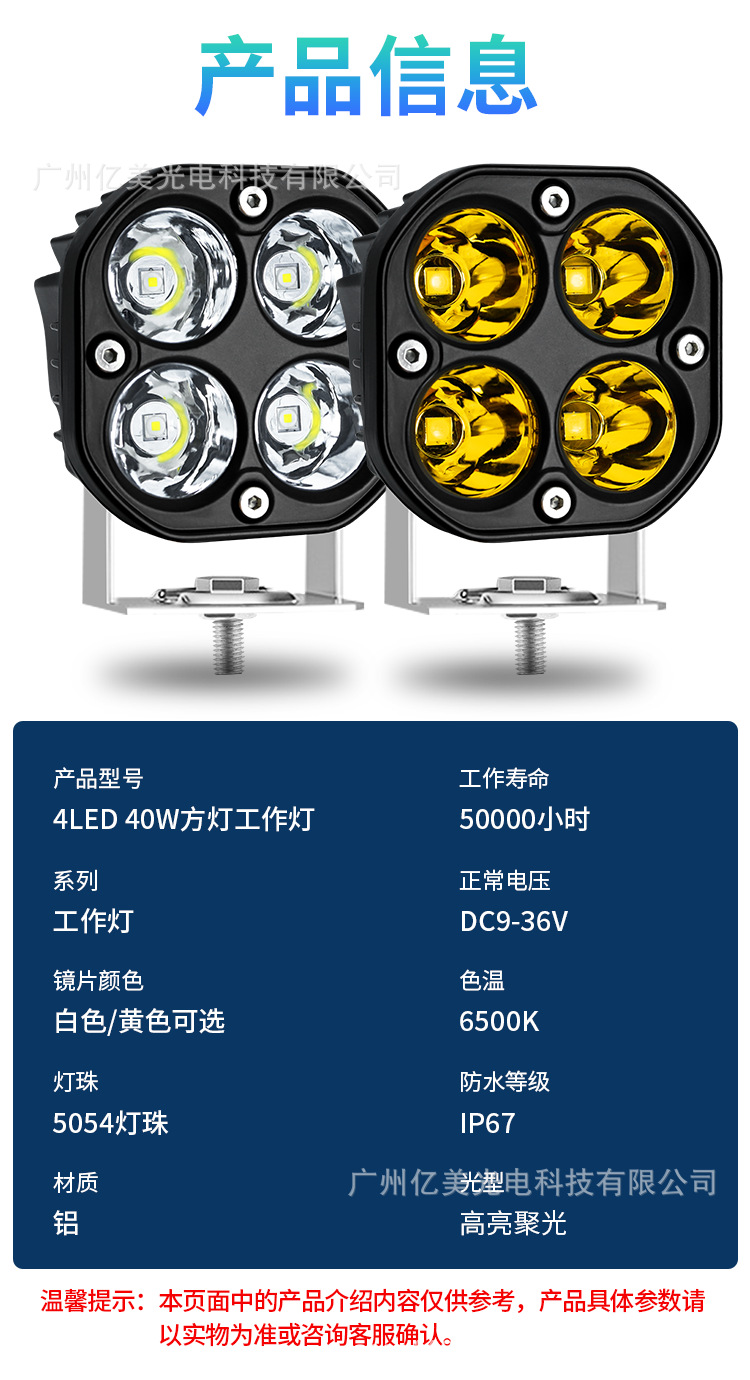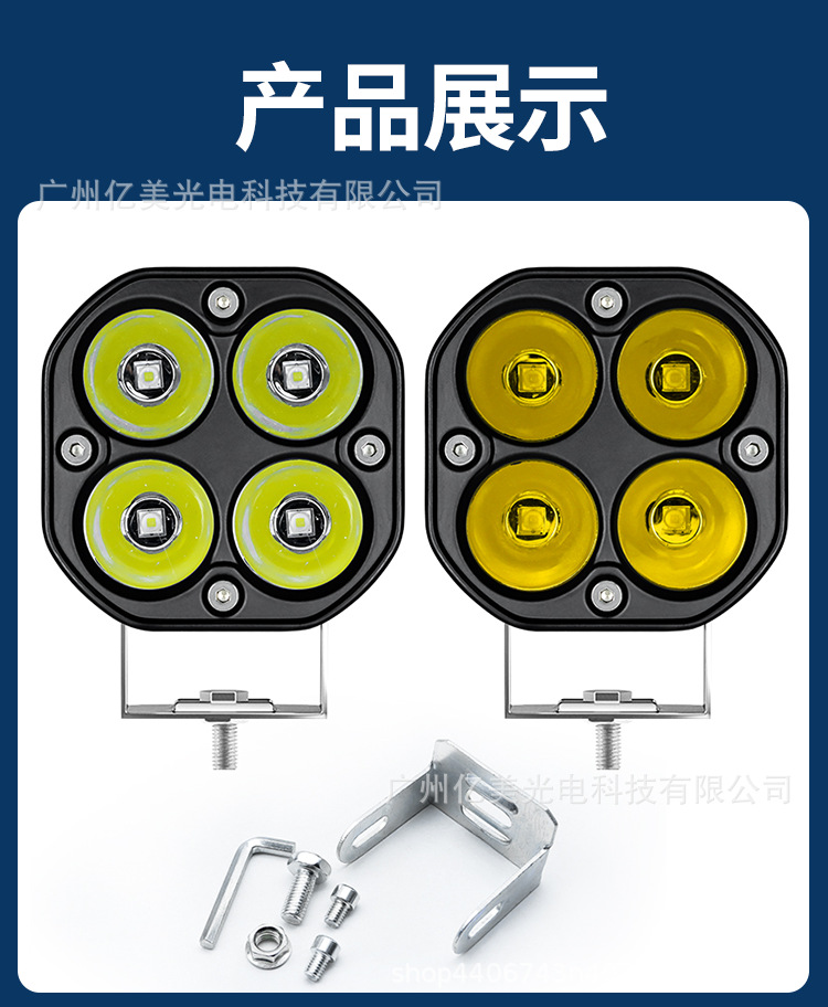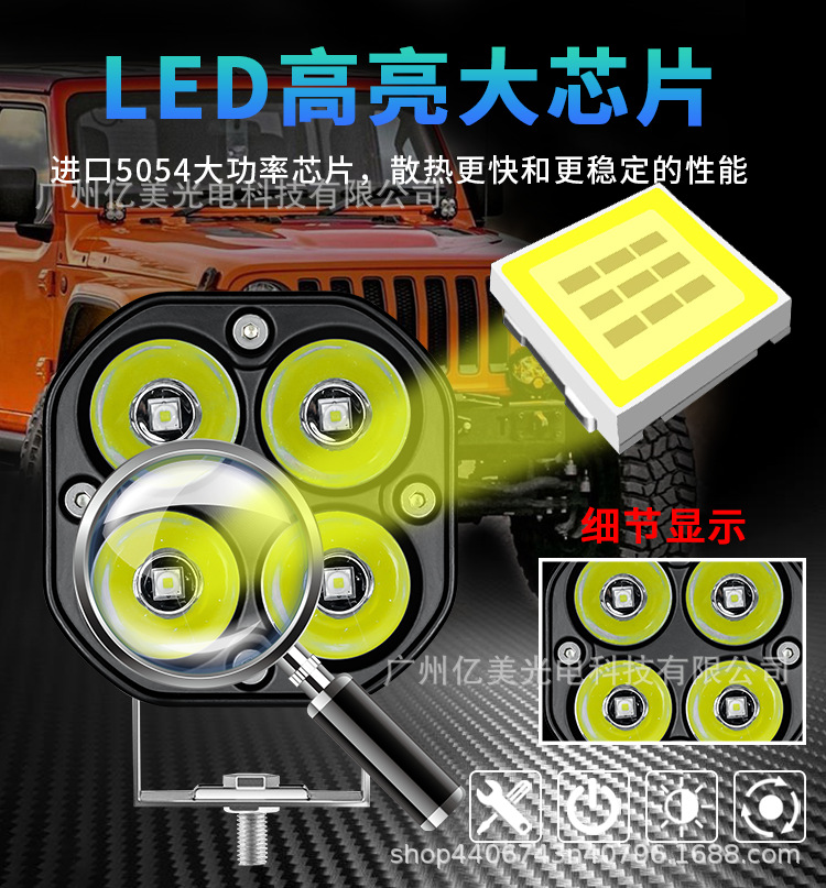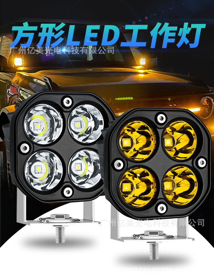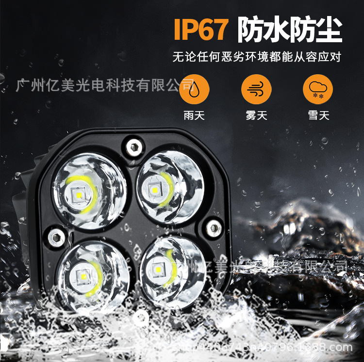 防水汽车LED行驶灯3英寸四叶草40W小方灯越野超亮越野车前杠射灯