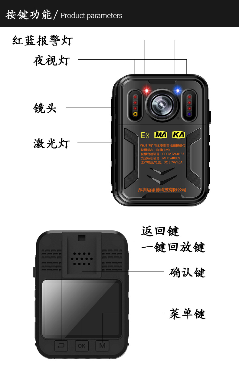 警忠YHJ3.7矿用本安型音视频执法记录仪防爆煤安证煤矿井下矿用