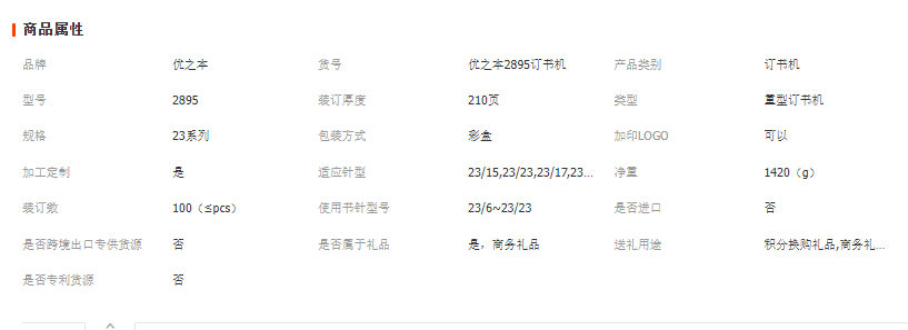 优之本重型订书机适用23系列订书钉可装订210页省力厚层装订器