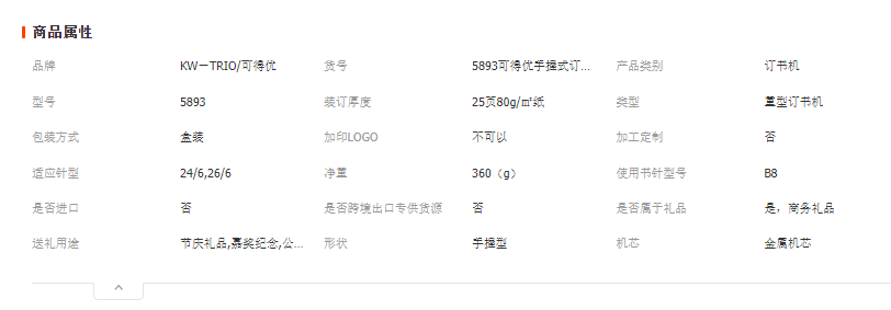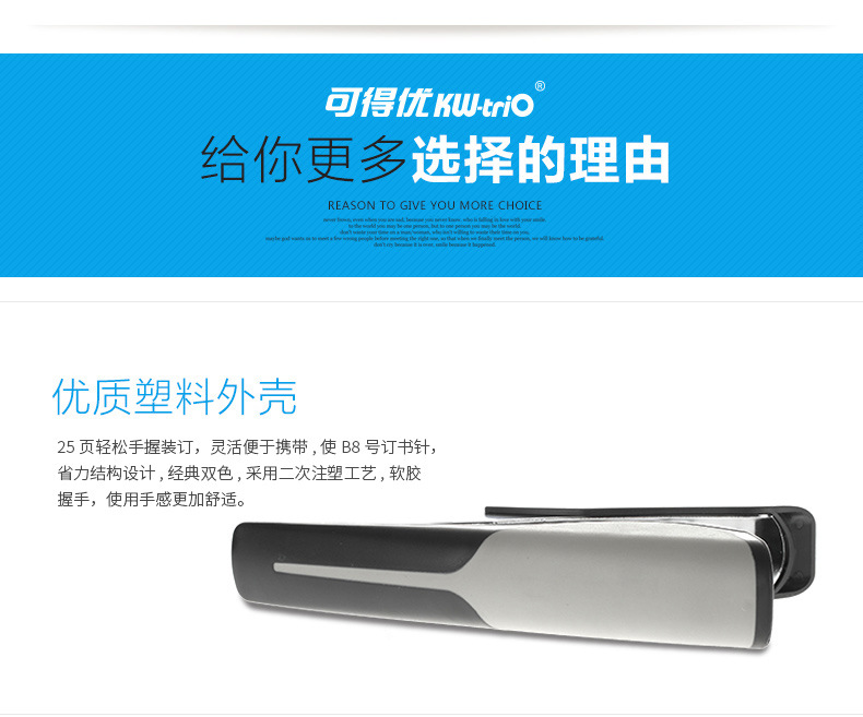 可得优手握式订书机kW5893适用B8书钉省力订书机办公文具618大促