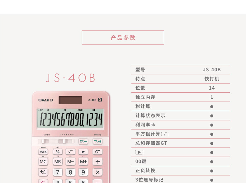 卡西欧JS-40B可爱女性商务14位宽屏快速静音礼品计算器正品两个颜