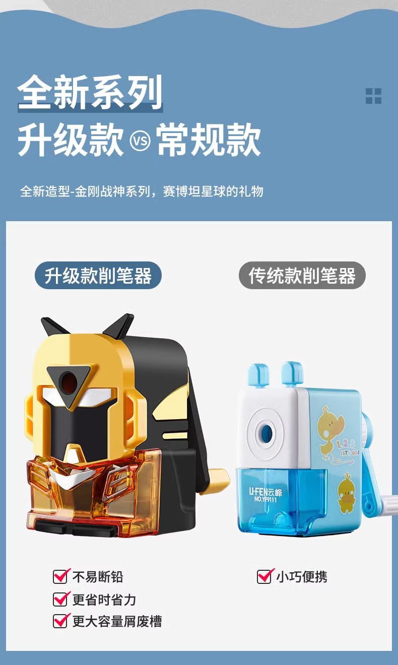 云峰电动文具套装小学生耐用电动削笔刀小巧便携转笔刀礼送礼礼盒