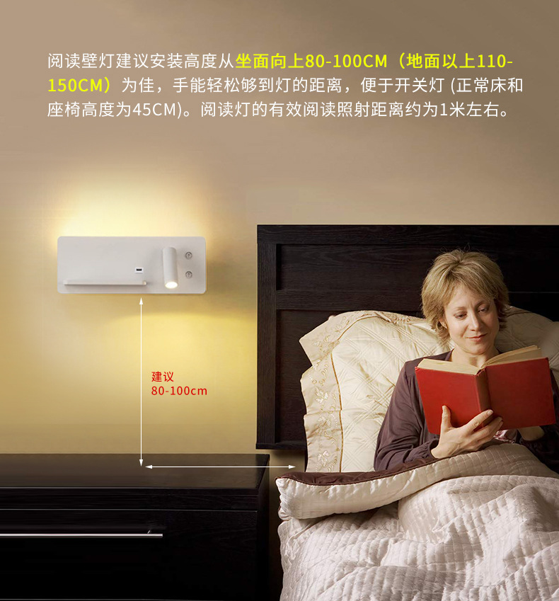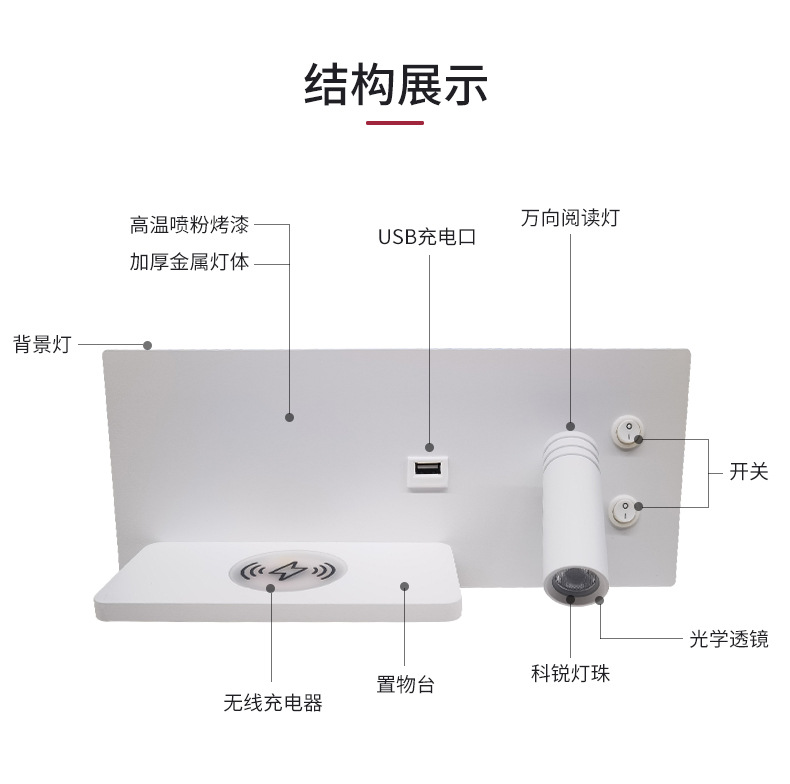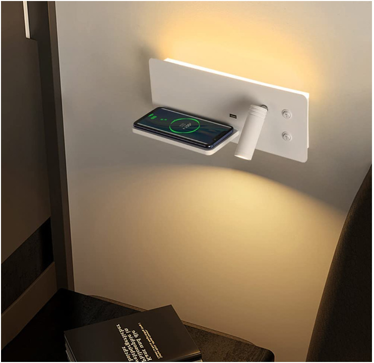 现代简约LED铝材阅读壁灯USB无线手机充电带开关书房卧 室床头壁灯