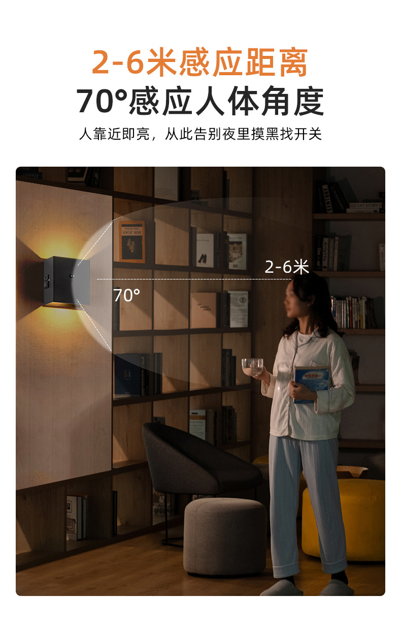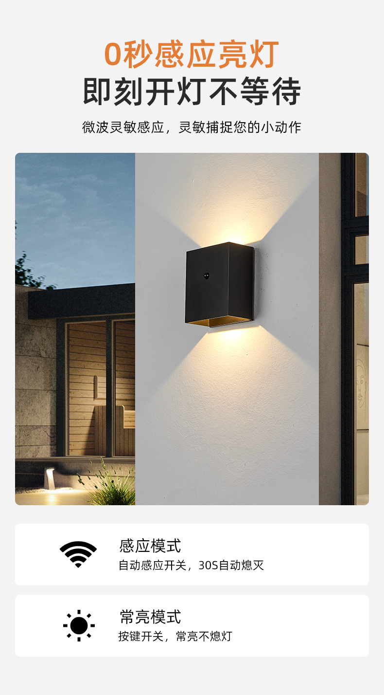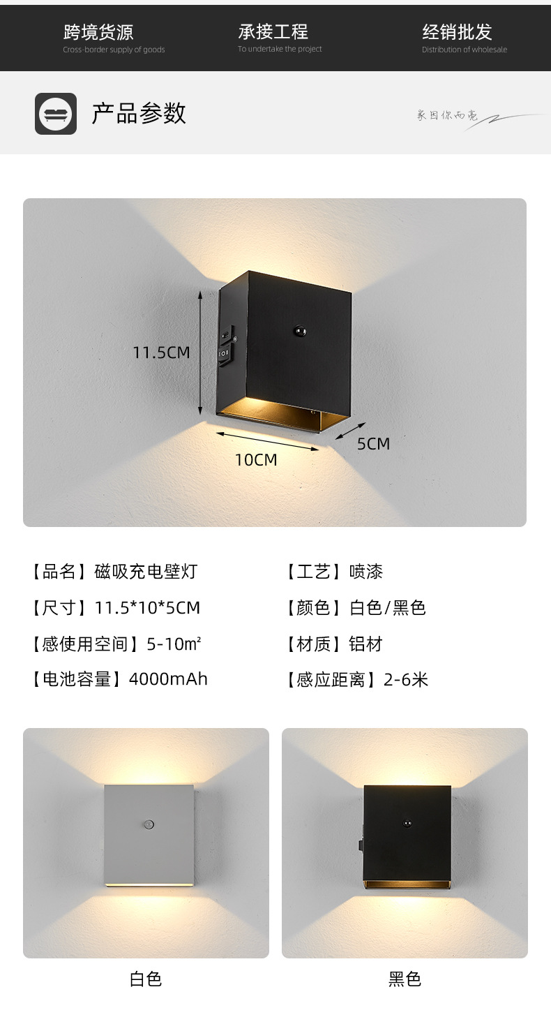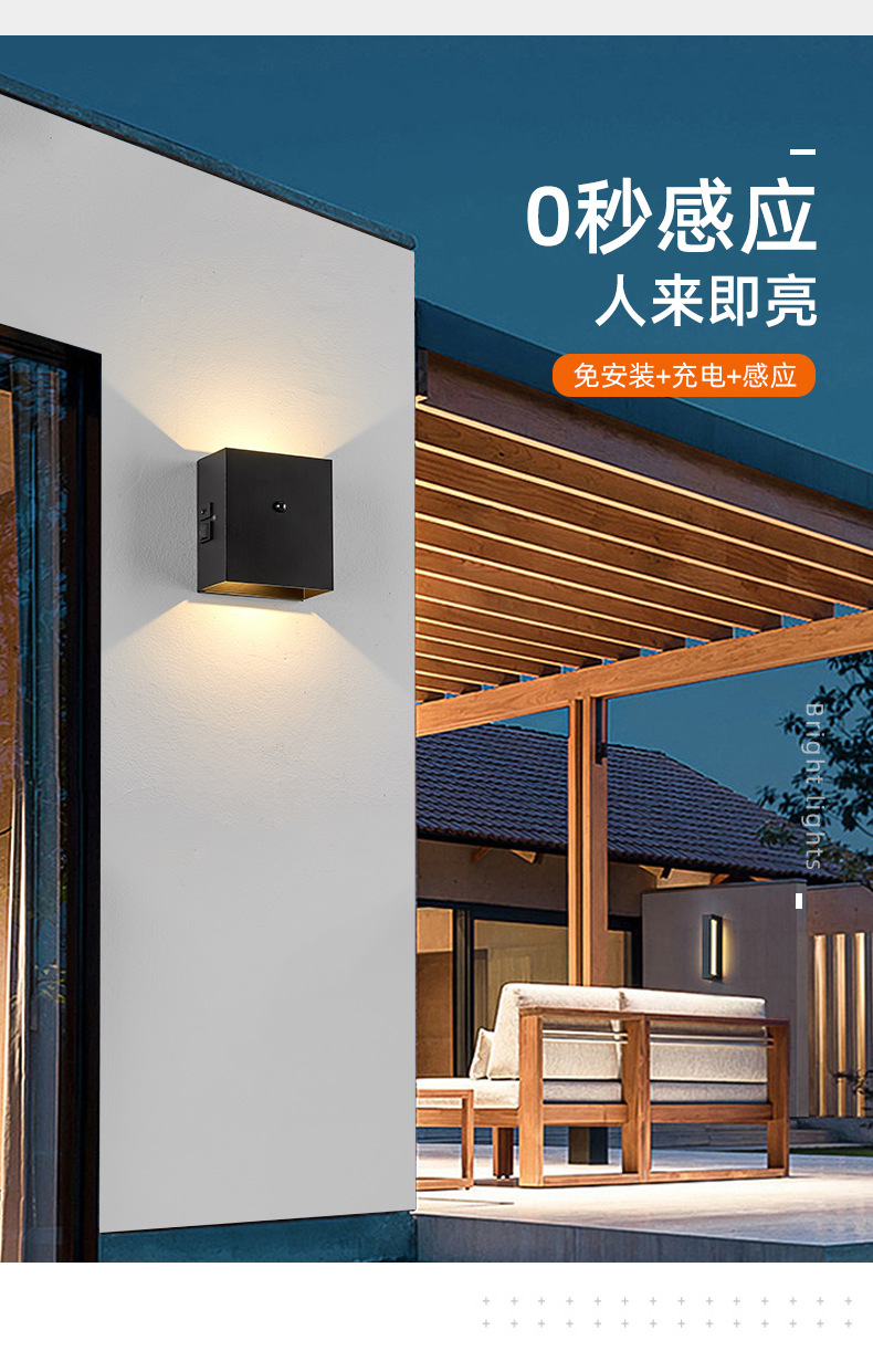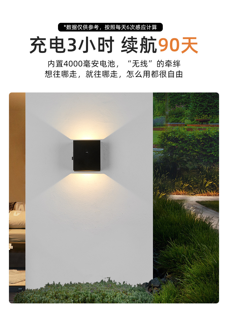 磁吸壁灯带感应 免布线充电壁灯庭院别墅led上下发光感应 壁灯跨境