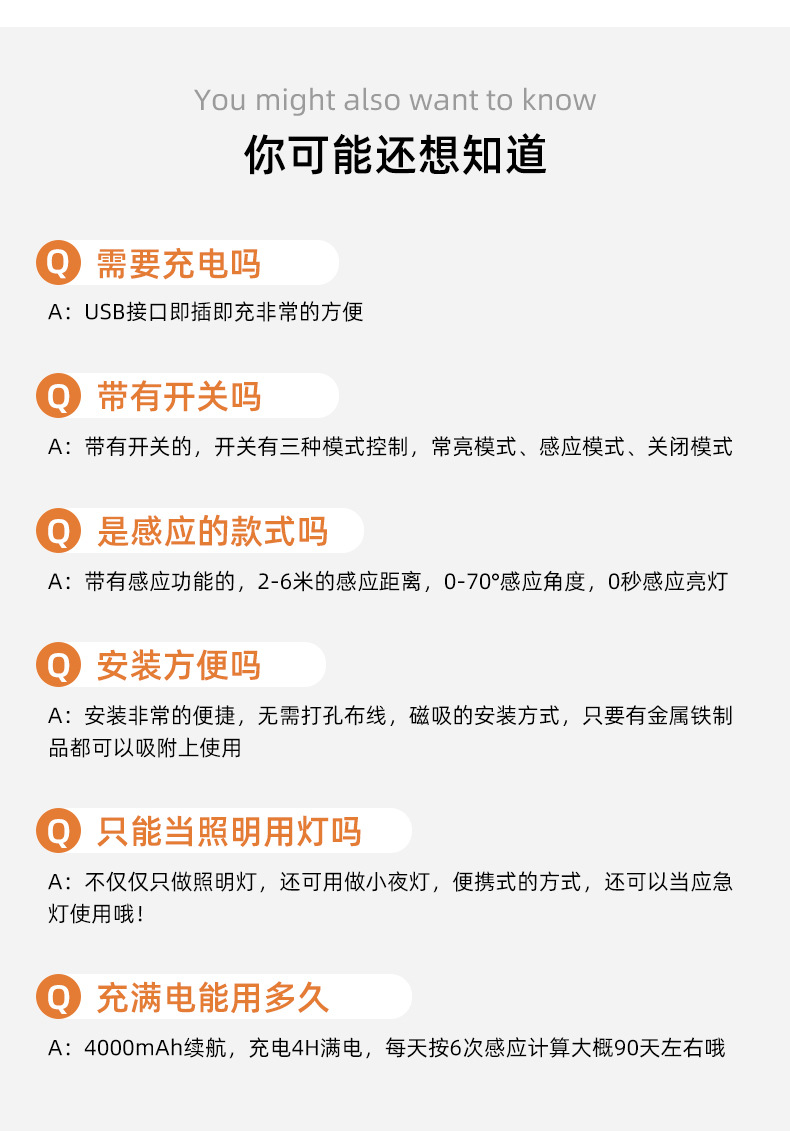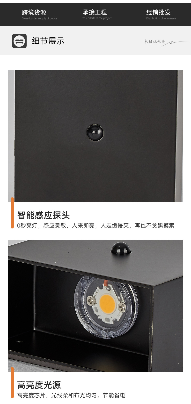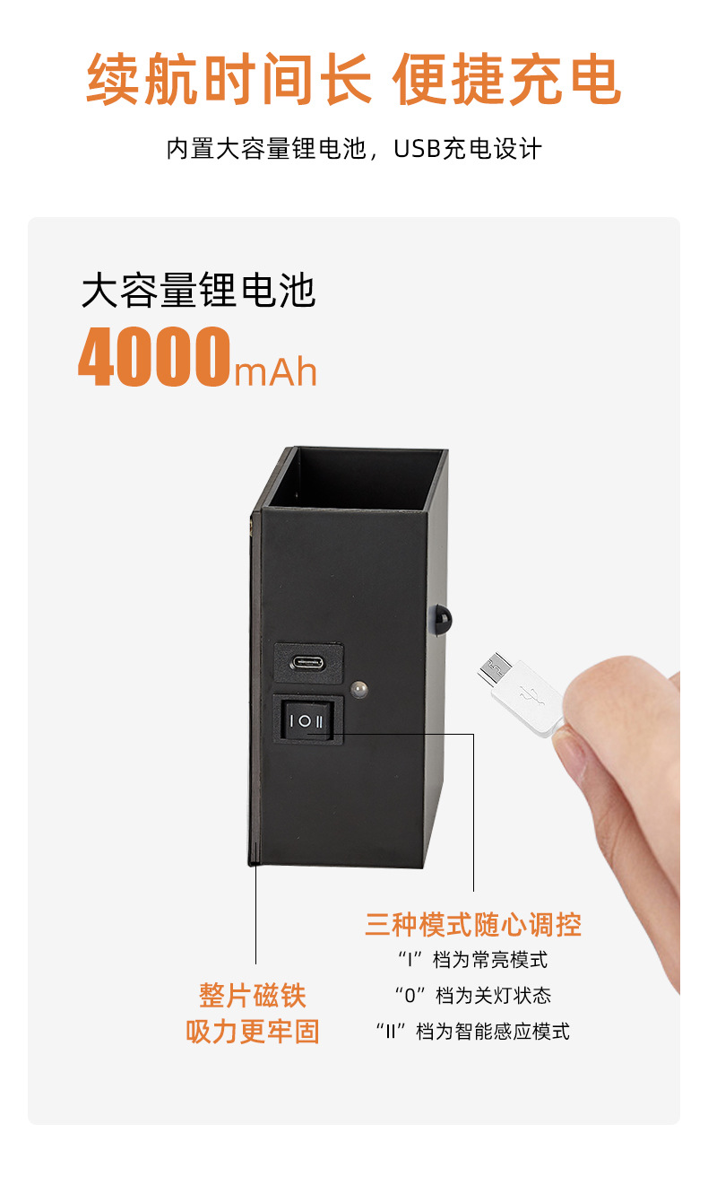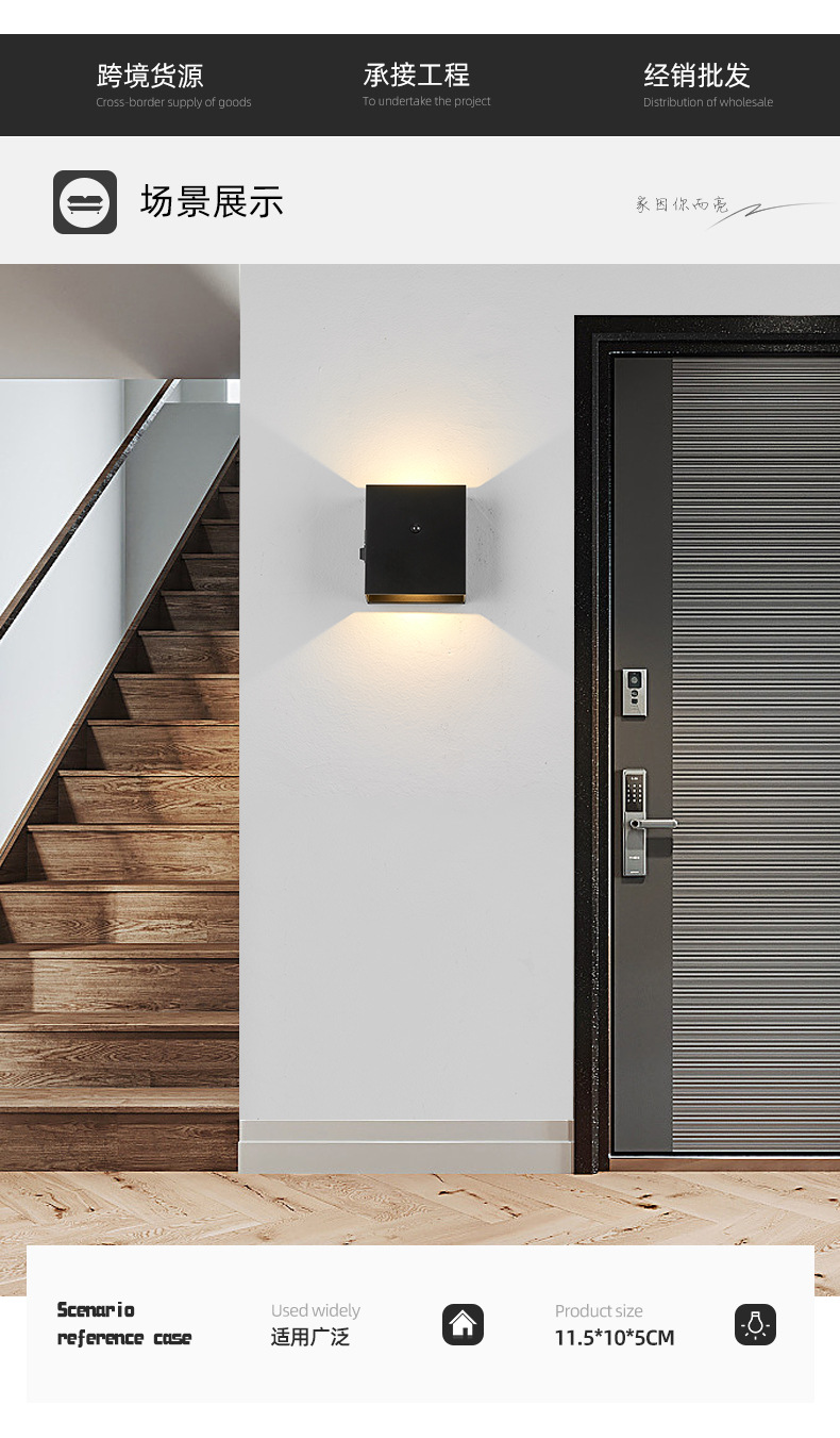 磁吸壁灯带感应 免布线充电壁灯庭院别墅led上下发光感应 壁灯跨境