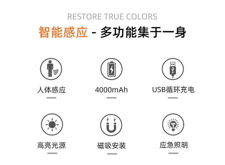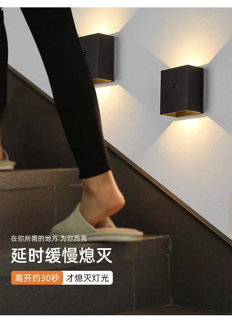 室内壁灯极简人体感应壁灯免布线免打孔磁吸壁灯充电led过 道壁灯