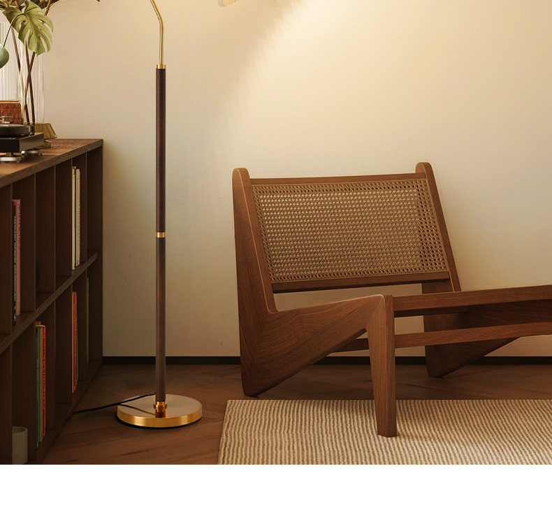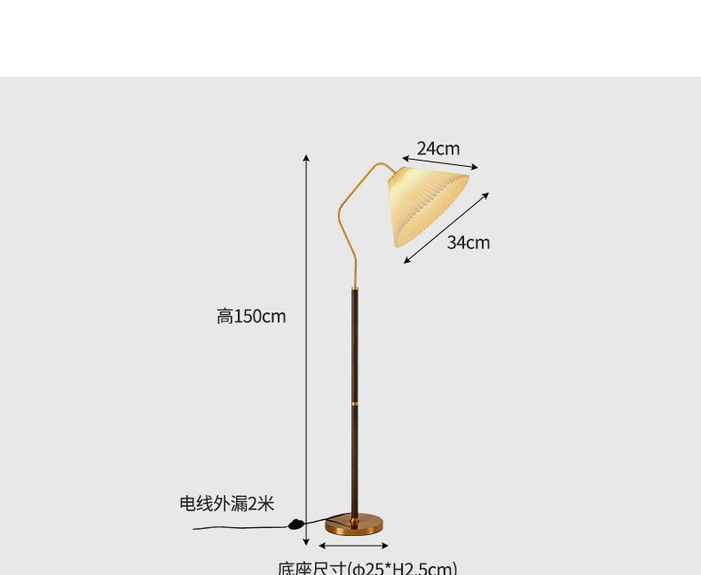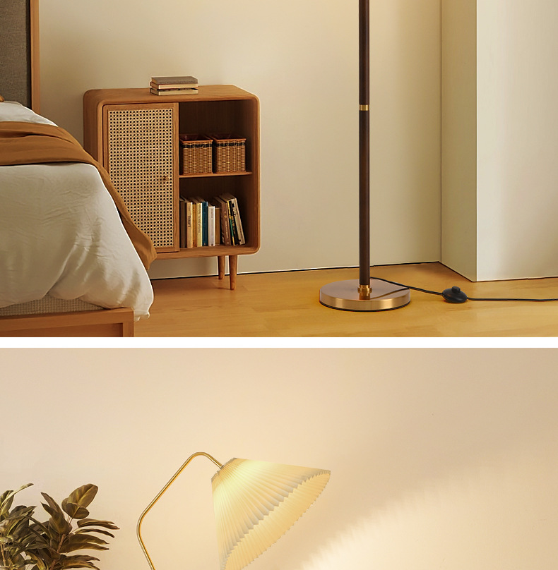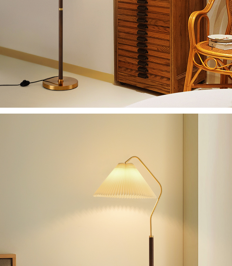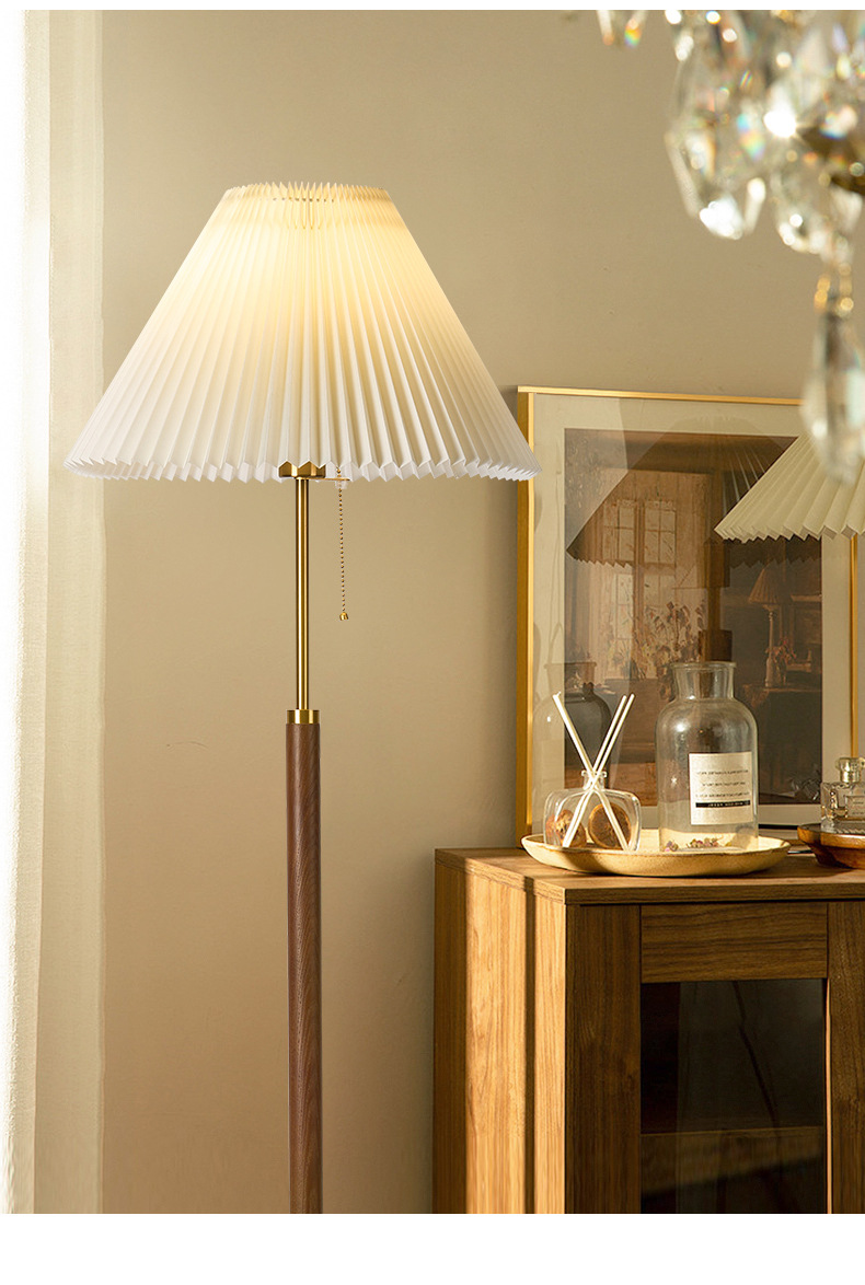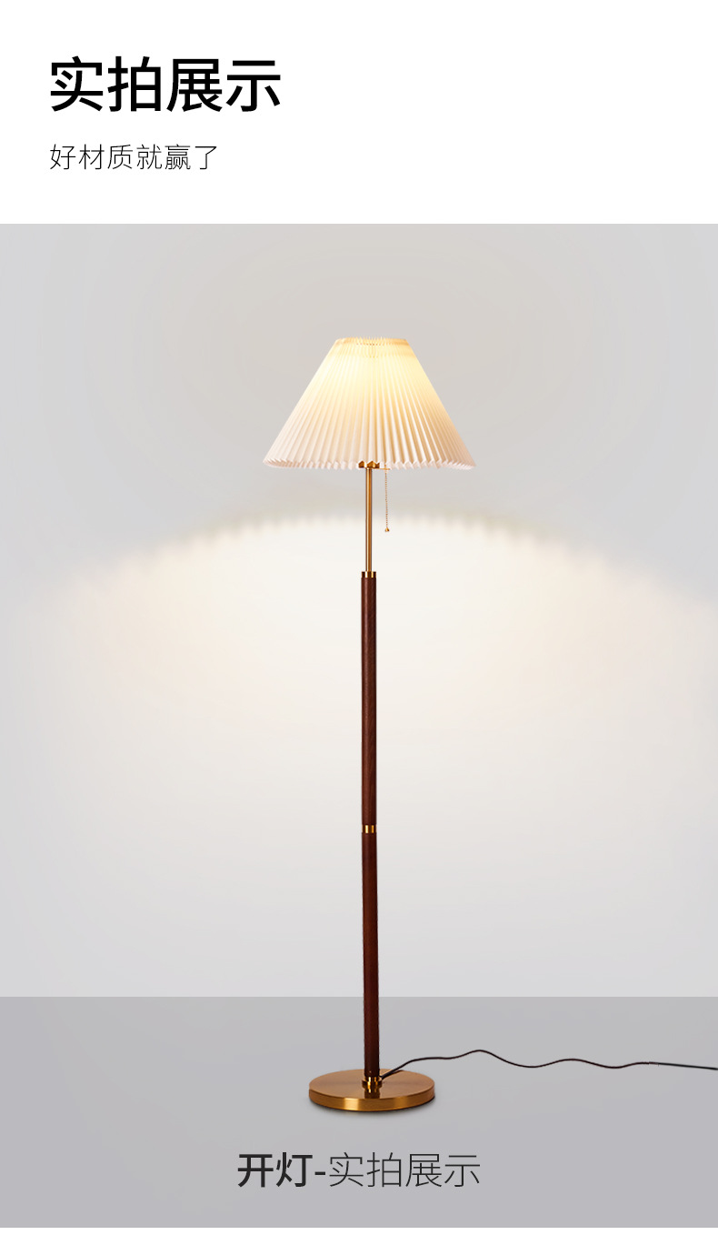 胡桃木复古落地灯客厅高级感氛围地灯卧室百褶床头灯美式民宿台灯