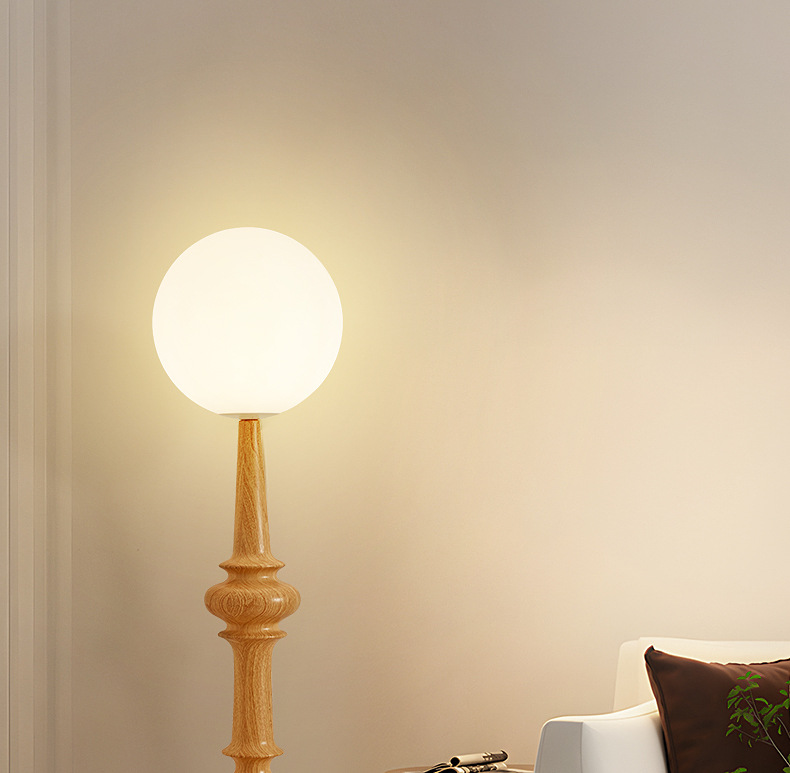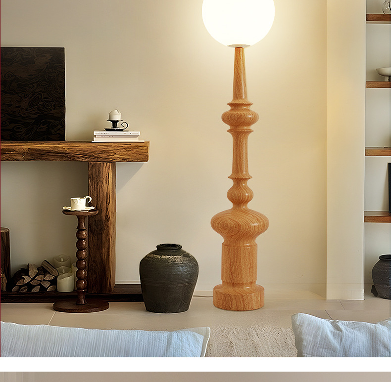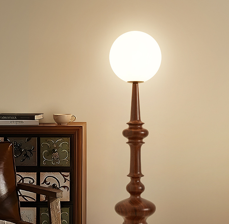 胡桃木复古落地灯客厅高级感氛围地灯卧室百褶床头灯美式民宿台灯