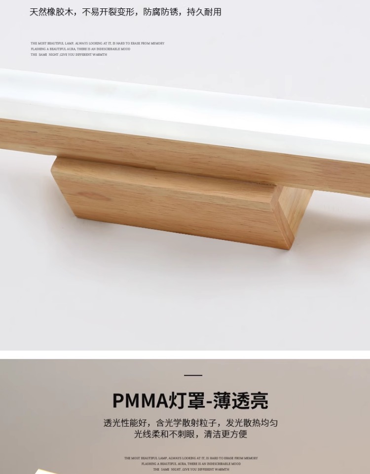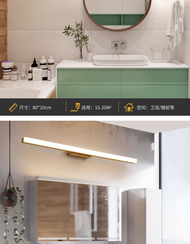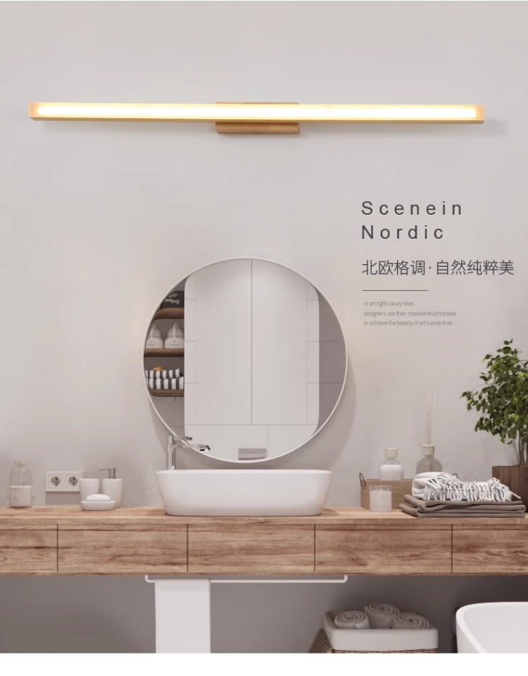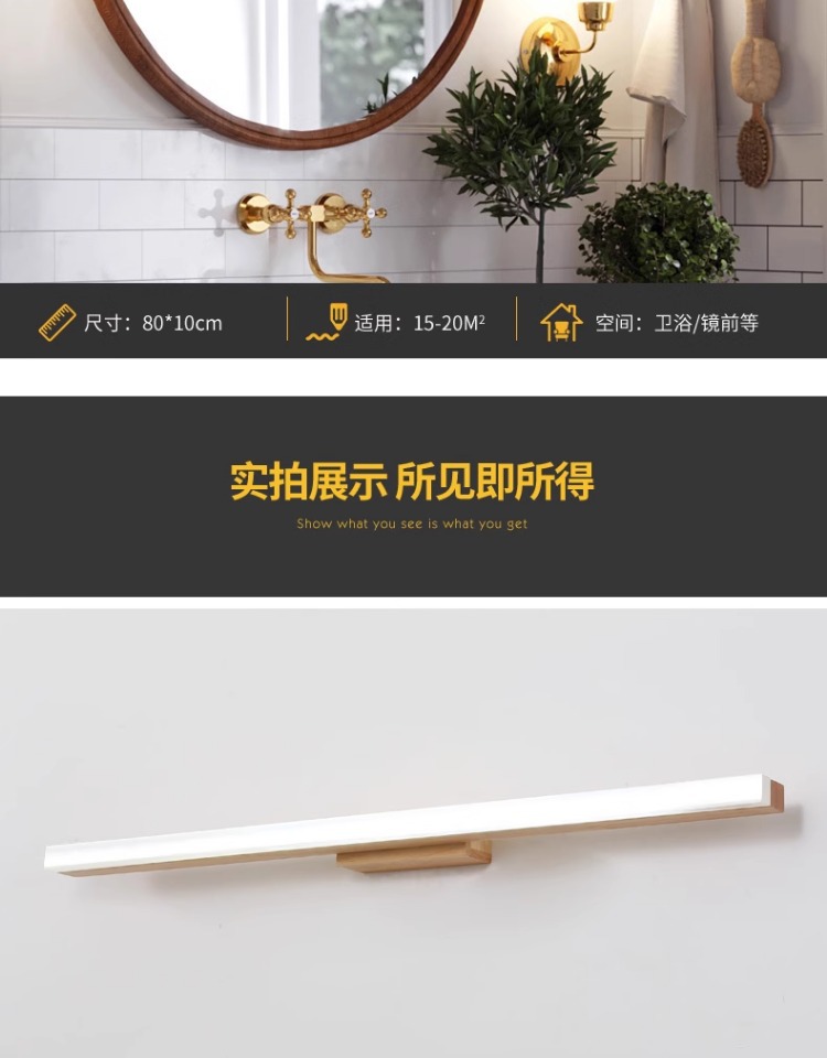 北欧led镜前灯实木镜柜化妆梳妆台防水防雾洗手间简约现代日式灯