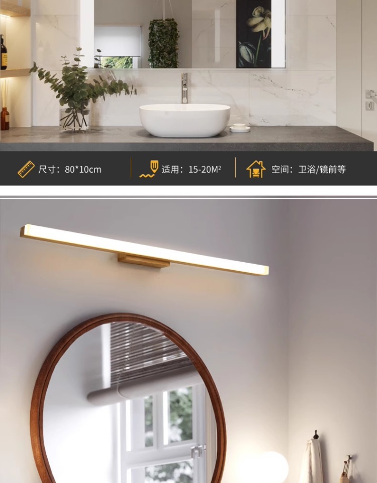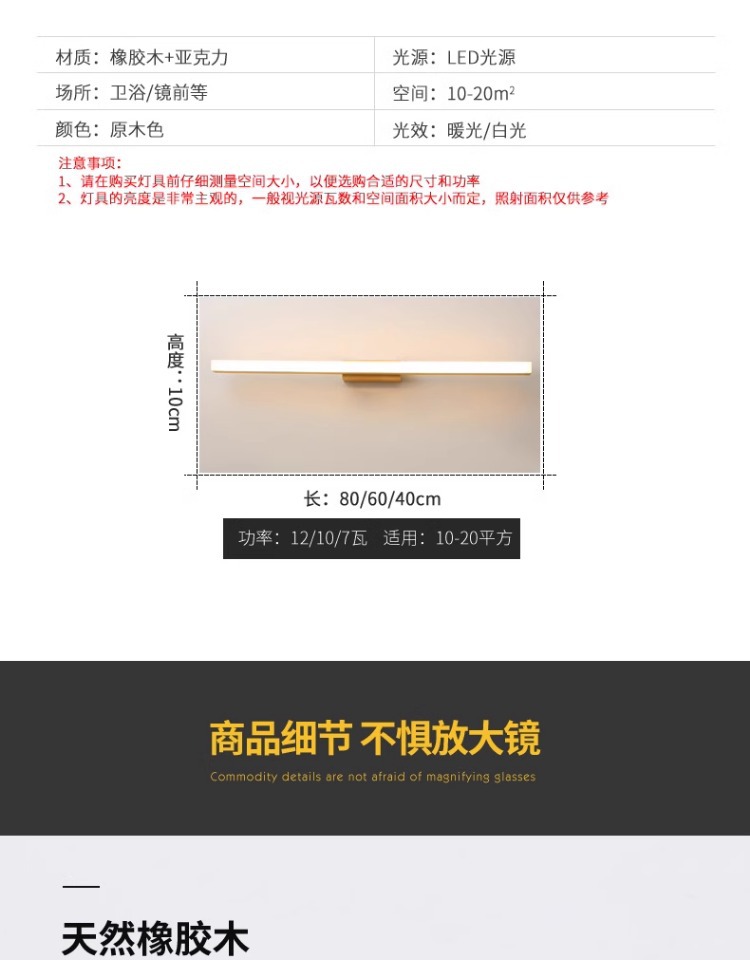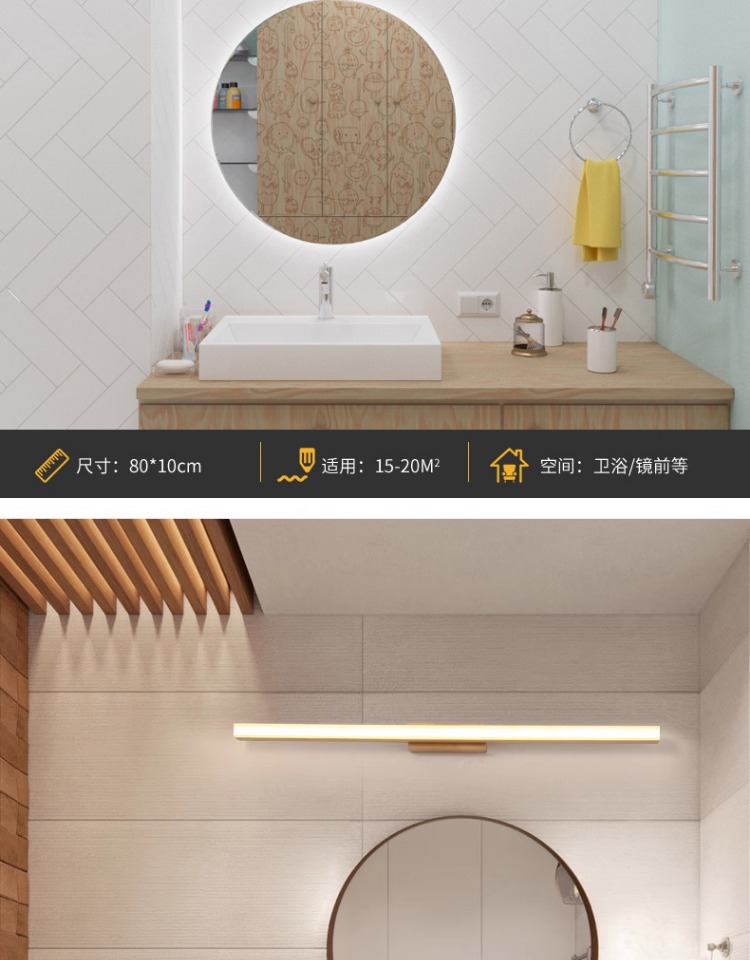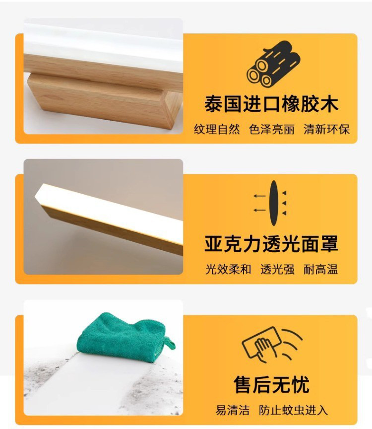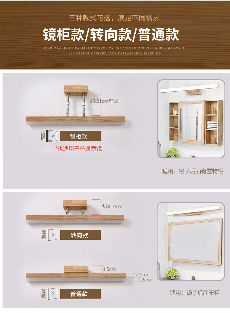 北欧led镜前灯实木镜柜化妆梳妆台防水防雾洗手间简约现代日式灯