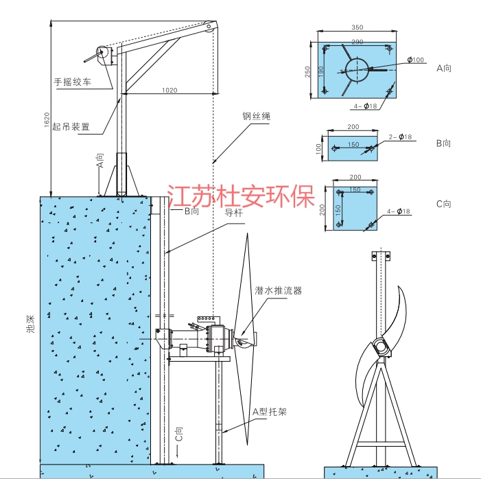 用于生物处理池中进行低速搅拌,以使池中泥水充分混合又不致产生充氧作用。