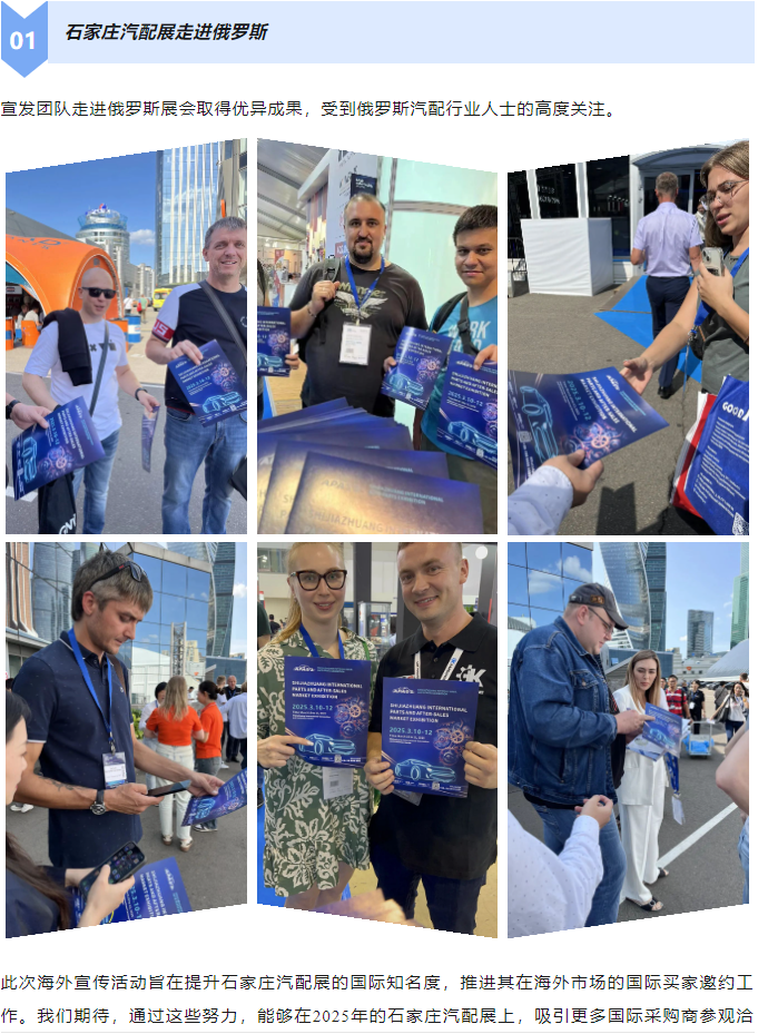 近日,俄罗斯(莫斯科)国际汽车零部件及售后服务展览会在红宝石会展中心隆重举行。我司石家庄汽配展的国际宣传官亲赴莫斯科,与现场的参展商和采购商进行深入的一对一交流,并向他们发出诚挚的邀请。