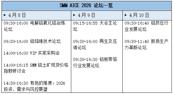 展会同期将举办九场高峰论坛。涵盖氧化铝、电解铝、铝压延铝板带箔、铝挤压管棒线型、再生回收、压铸、铝熔铸等产业链议题,另设铝土矿价格、有色需求与风控分析研讨会。