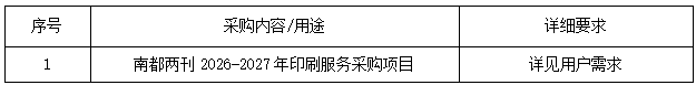 2.项目名称:南都两刊2026-2027年印刷服务采购项目。