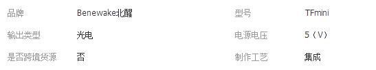 本网页所展示的有关【北醒Benewake-TFmini微型激光雷达模组测距传感器定高地形跟随_其他传感器_长沙湖重机电设备有限公司】的信息/图片/参数等由全球零部件网的会员【长沙湖重机电设备有限公司】提供,由全球零部件网会员【长沙湖重机电设备有限公司】自行对信息/图片/参数等的真实性、准确性和合法性负责,本平台(本网站)仅提供展示服务,请谨慎交易,因交易而产生的法律关系及法律纠纷由您自行协商解决,本平台(本网站)对此不承担任何责任。您在本网页可以浏览【北醒Benewake-TFmini微型激光雷达模组测距传感器定高地形跟随_其他传感器_长沙湖重机电设备有限公司】有关的信息/图片/价格等及提供【北醒Benewake-TFmini微型激光雷达模组测距传感器定高地形跟随_其他传感器_长沙湖重机电设备有限公司】的商家公司简介、联系方式等信息。