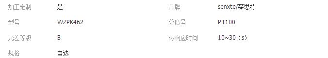 可以同时输出两组相同信号供使用。安装固定装置有固定螺纹、活动法兰盘、固定安装法兰盘和带固定螺栓锥形保护管装置等形式。薄膜铂电阻具有精度高,稳定性好,可靠性强,产品寿命长等优点,适用于工业自动化测量及各种实验。