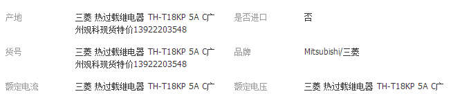 | 三菱 热过载继电器 TH-T18KP 5A C广州观科现货特价13922203548 |