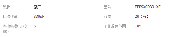 本网页所展示的有关【EEFSX0D331XE 表面贴装型导电性高分子铝电容器_其他固定电阻_深圳市明佳达电子有限公司】的信息/图片/参数等由全球零部件网的会员【深圳市明佳达电子有限公司】提供,由全球零部件网会员【深圳市明佳达电子有限公司】自行对信息/图片/参数等的真实性、准确性和合法性负责,本平台(本网站)仅提供展示服务,请谨慎交易,因交易而产生的法律关系及法律纠纷由您自行协商解决,本平台(本网站)对此不承担任何责任。您在本网页可以浏览【EEFSX0D331XE 表面贴装型导电性高分子铝电容器_其他固定电阻_深圳市明佳达电子有限公司】有关的信息/图片/价格等及提供【EEFSX0D331XE 表面贴装型导电性高分子铝电容器_其他固定电阻_深圳市明佳达电子有限公司】的商家公司简介、联系方式等信息。