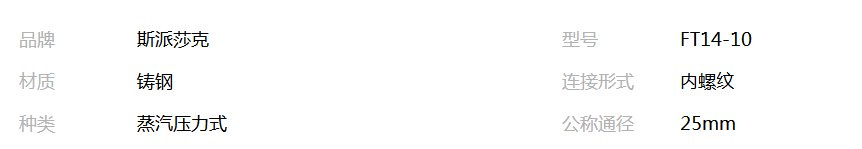 本网页所展示的有关【FT14疏水阀,英国斯派莎克FT14-10铸钢丝口疏水阀_其它阀门_深圳克罗斯阀门公司】的信息/图片/参数等由全球零部件网的会员【深圳克罗斯阀门公司】提供,由全球零部件网会员【深圳克罗斯阀门公司】自行对信息/图片/参数等的真实性、准确性和合法性负责,本平台(本网站)仅提供展示服务,请谨慎交易,因交易而产生的法律关系及法律纠纷由您自行协商解决,本平台(本网站)对此不承担任何责任。您在本网页可以浏览【FT14疏水阀,英国斯派莎克FT14-10铸钢丝口疏水阀_其它阀门_深圳克罗斯阀门公司】有关的信息/图片/价格等及提供【FT14疏水阀,英国斯派莎克FT14-10铸钢丝口疏水阀_其它阀门_深圳克罗斯阀门公司】的商家公司简介、联系方式等信息。