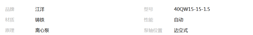 本网页所展示的有关【江洋泵业厂家直销40QW15-15-1.5排污泵_泵_河北祁水泵业有限公司】的信息/图片/参数等由全球零部件网的会员【河北祁水泵业有限公司】提供,由全球零部件网会员【河北祁水泵业有限公司】自行对信息/图片/参数等的真实性、准确性和合法性负责,本平台(本网站)仅提供展示服务,请谨慎交易,因交易而产生的法律关系及法律纠纷由您自行协商解决,本平台(本网站)对此不承担任何责任。您在本网页可以浏览【江洋泵业厂家直销40QW15-15-1.5排污泵_泵_河北祁水泵业有限公司】有关的信息/图片/价格等及提供【江洋泵业厂家直销40QW15-15-1.5排污泵_泵_河北祁水泵业有限公司】的商家公司简介、联系方式等信息。