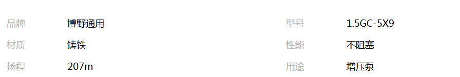 本网页所展示的有关【1.5GC-5X9多级离心泵_泵_博野县通用水泵制造有限公司】的信息/图片/参数等由全球零部件网的会员【博野县通用水泵制造有限公司】提供,由全球零部件网会员【博野县通用水泵制造有限公司】自行对信息/图片/参数等的真实性、准确性和合法性负责,本平台(本网站)仅提供展示服务,请谨慎交易,因交易而产生的法律关系及法律纠纷由您自行协商解决,本平台(本网站)对此不承担任何责任。您在本网页可以浏览【1.5GC-5X9多级离心泵_泵_博野县通用水泵制造有限公司】有关的信息/图片/价格等及提供【1.5GC-5X9多级离心泵_泵_博野县通用水泵制造有限公司】的商家公司简介、联系方式等信息。