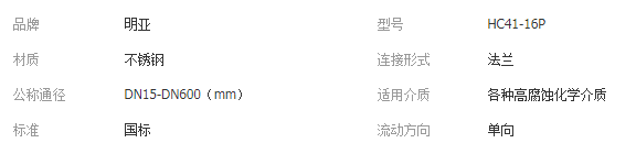 本网页所展示的有关【HC41-16P304不锈钢法兰球形止回阀卫生级立式消音止回阀DN50DN40_止回阀_东莞市明亚阀门管件有限公司】的信息/图片/参数等由全球零部件网的会员【东莞市明亚阀门管件有限公司】提供,由全球零部件网会员【东莞市明亚阀门管件有限公司】自行对信息/图片/参数等的真实性、准确性和合法性负责,本平台(本网站)仅提供展示服务,请谨慎交易,因交易而产生的法律关系及法律纠纷由您自行协商解决,本平台(本网站)对此不承担任何责任。您在本网页可以浏览【HC41-16P304不锈钢法兰球形止回阀卫生级立式消音止回阀DN50DN40_止回阀_东莞市明亚阀门管件有限公司】有关的信息/图片/价格等及提供【HC41-16P304不锈钢法兰球形止回阀卫生级立式消音止回阀DN50DN40_止回阀_东莞市明亚阀门管件有限公司】的商家公司简介、联系方式等信息。