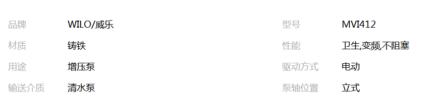 本网页所展示的有关【德国威乐水泵MVI412不锈钢变频泵高扬程泵增压恒压稳压水泵_泵_安徽宏久水泵销售有限公司】的信息/图片/参数等由全球零部件网的会员【安徽宏久水泵销售有限公司】提供,由全球零部件网会员【安徽宏久水泵销售有限公司】自行对信息/图片/参数等的真实性、准确性和合法性负责,本平台(本网站)仅提供展示服务,请谨慎交易,因交易而产生的法律关系及法律纠纷由您自行协商解决,本平台(本网站)对此不承担任何责任。您在本网页可以浏览【德国威乐水泵MVI412不锈钢变频泵高扬程泵增压恒压稳压水泵_泵_安徽宏久水泵销售有限公司】有关的信息/图片/价格等及提供【德国威乐水泵MVI412不锈钢变频泵高扬程泵增压恒压稳压水泵_泵_安徽宏久水泵销售有限公司】的商家公司简介、联系方式等信息。