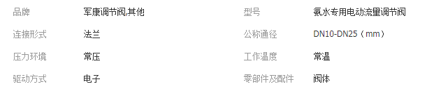 本网页所展示的有关【氨水专用电动流量调节阀 氨水小流量控制电动调节阀 法兰调节阀_阀门_浙江军康阀门科技有限公司】的信息/图片/参数等由全球零部件网的会员【浙江军康阀门科技有限公司】提供,由全球零部件网会员【浙江军康阀门科技有限公司】自行对信息/图片/参数等的真实性、准确性和合法性负责,本平台(本网站)仅提供展示服务,请谨慎交易,因交易而产生的法律关系及法律纠纷由您自行协商解决,本平台(本网站)对此不承担任何责任。您在本网页可以浏览【氨水专用电动流量调节阀 氨水小流量控制电动调节阀 法兰调节阀_阀门_浙江军康阀门科技有限公司】有关的信息/图片/价格等及提供【氨水专用电动流量调节阀 氨水小流量控制电动调节阀 法兰调节阀_阀门_浙江军康阀门科技有限公司】的商家公司简介、联系方式等信息。