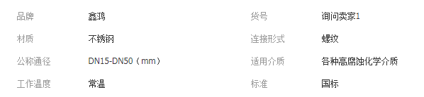 本网页所展示的有关【厂家供应三片式平台球阀DN15-DN50 不锈钢螺纹球阀 气动球阀_球阀_浙江鑫鸿阀门管件有限公司】的信息/图片/参数等由全球零部件网的会员【浙江鑫鸿阀门管件有限公司】提供,由全球零部件网会员【浙江鑫鸿阀门管件有限公司】自行对信息/图片/参数等的真实性、准确性和合法性负责,本平台(本网站)仅提供展示服务,请谨慎交易,因交易而产生的法律关系及法律纠纷由您自行协商解决,本平台(本网站)对此不承担任何责任。您在本网页可以浏览【厂家供应三片式平台球阀DN15-DN50 不锈钢螺纹球阀 气动球阀_球阀_浙江鑫鸿阀门管件有限公司】有关的信息/图片/价格等及提供【厂家供应三片式平台球阀DN15-DN50 不锈钢螺纹球阀 气动球阀_球阀_浙江鑫鸿阀门管件有限公司】的商家公司简介、联系方式等信息。