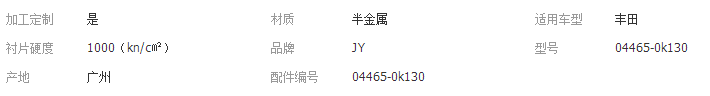 本网页所展示的有关【供应海拉克斯KUN15 kun25 前摩擦片 前刹车片 04465-0k130_ HVAC汽车_广州积运汽车配件有限公司】的信息/图片/参数等由全球零部件网的会员【广州积运汽车配件有限公司】提供,由全球零部件网会员【广州积运汽车配件有限公司】自行对信息/图片/参数等的真实性、准确性和合法性负责,本平台(本网站)仅提供展示服务,请谨慎交易,因交易而产生的法律关系及法律纠纷由您自行协商解决,本平台(本网站)对此不承担任何责任。您在本网页可以浏览【供应海拉克斯KUN15 kun25 前摩擦片 前刹车片 04465-0k130_ HVAC汽车_广州积运汽车配件有限公司】有关的信息/图片/价格等及提供【供应海拉克斯KUN15 kun25 前摩擦片 前刹车片 04465-0k130_ HVAC汽车_广州积运汽车配件有限公司】的商家公司简介、联系方式等信息。