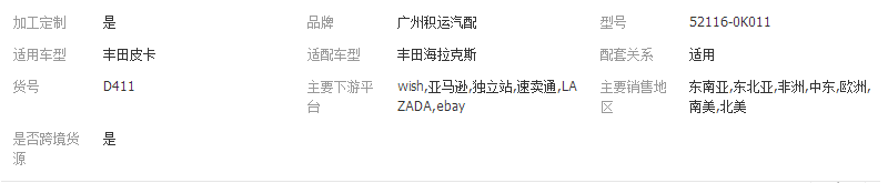 本网页所展示的有关【供应海拉克斯KUN26前保险杠左侧支架 前杠支架52116-0K011_ HVAC汽车_广州积运汽车配件有限公司】的信息/图片/参数等由全球零部件网的会员【广州积运汽车配件有限公司】提供,由全球零部件网会员【广州积运汽车配件有限公司】自行对信息/图片/参数等的真实性、准确性和合法性负责,本平台(本网站)仅提供展示服务,请谨慎交易,因交易而产生的法律关系及法律纠纷由您自行协商解决,本平台(本网站)对此不承担任何责任。您在本网页可以浏览【供应海拉克斯KUN26前保险杠左侧支架 前杠支架52116-0K011_ HVAC汽车_广州积运汽车配件有限公司】有关的信息/图片/价格等及提供【供应海拉克斯KUN26前保险杠左侧支架 前杠支架52116-0K011_ HVAC汽车_广州积运汽车配件有限公司】的商家公司简介、联系方式等信息。