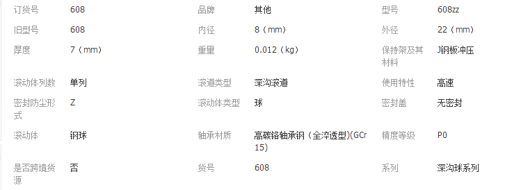 本网页所展示的有关【608不锈钢混合陶瓷轴承尺寸8*22*7mm超长空转 承陀螺轴批发_轴承_深圳市创亿轴承有限公司 】的信息/图片/参数等由全球零部件网的会员【深圳市创亿轴承有限公司 】提供,由全球零部件网会员【深圳市创亿轴承有限公司 】自行对信息/图片/参数等的真实性、准确性和合法性负责,本平台(本网站)仅提供展示服务,请谨慎交易,因交易而产生的法律关系及法律纠纷由您自行协商解决,本平台(本网站)对此不承担任何责任。您在本网页可以浏览【608不锈钢混合陶瓷轴承尺寸8*22*7mm超长空转 承陀螺轴批发_轴承_深圳市创亿轴承有限公司 】有关的信息/图片/价格等及提供【608不锈钢混合陶瓷轴承尺寸8*22*7mm超长空转 承陀螺轴批发_轴承_深圳市创亿轴承有限公司 】的商家公司简介、联系方式等信息。