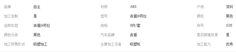 本网页所展示的有关【卡莱斯克吉普jk劳拉ABS8件套专车专用汽车轮眉黑色汽车改装配件_ HVAC汽车_深圳市卡莱斯克汽车用品有限公司】的信息/图片/参数等由全球零部件网的会员【深圳市卡莱斯克汽车用品有限公司】提供,由全球零部件网会员【深圳市卡莱斯克汽车用品有限公司】自行对信息/图片/参数等的真实性、准确性和合法性负责,本平台(本网站)仅提供展示服务,请谨慎交易,因交易而产生的法律关系及法律纠纷由您自行协商解决,本平台(本网站)对此不承担任何责任。您在本网页可以浏览【卡莱斯克吉普jk劳拉ABS8件套专车专用汽车轮眉黑色汽车改装配件_ HVAC汽车_深圳市卡莱斯克汽车用品有限公司】有关的信息/图片/价格等及提供【卡莱斯克吉普jk劳拉ABS8件套专车专用汽车轮眉黑色汽车改装配件_ HVAC汽车_深圳市卡莱斯克汽车用品有限公司】的商家公司简介、联系方式等信息。