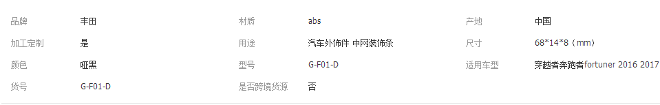 本网页所展示的有关【穿越者fortuner 2016 2017 电镀饰条 ABS前机盖饰条 哑黑中网饰条_ HVAC汽车_广州泰帅汽车用品有限公司】的信息/图片/参数等由全球零部件网的会员【广州泰帅汽车用品有限公司】提供,由全球零部件网会员【广州泰帅汽车用品有限公司】自行对信息/图片/参数等的真实性、准确性和合法性负责,本平台(本网站)仅提供展示服务,请谨慎交易,因交易而产生的法律关系及法律纠纷由您自行协商解决,本平台(本网站)对此不承担任何责任。您在本网页可以浏览【穿越者fortuner 2016 2017 电镀饰条 ABS前机盖饰条 哑黑中网饰条_ HVAC汽车_广州泰帅汽车用品有限公司】有关的信息/图片/价格等及提供【穿越者fortuner 2016 2017 电镀饰条 ABS前机盖饰条 哑黑中网饰条_ HVAC汽车_广州泰帅汽车用品有限公司】的商家公司简介、联系方式等信息。