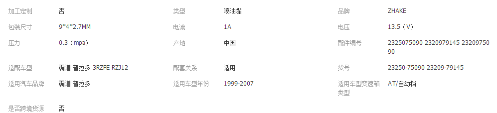 本网页所展示的有关【霸道 普拉多 3RZFE RZJ12 喷油嘴 23250-75090 23209-79145喷油嘴_ HVAC汽车_广州摩纹尼汽车配件有限公司 】的信息/图片/参数等由全球零部件网的会员【广州摩纹尼汽车配件有限公司 】提供,由全球零部件网会员【广州摩纹尼汽车配件有限公司 】自行对信息/图片/参数等的真实性、准确性和合法性负责,本平台(本网站)仅提供展示服务,请谨慎交易,因交易而产生的法律关系及法律纠纷由您自行协商解决,本平台(本网站)对此不承担任何责任。您在本网页可以浏览【霸道 普拉多 3RZFE RZJ12 喷油嘴 23250-75090 23209-79145喷油嘴_ HVAC汽车_广州摩纹尼汽车配件有限公司 】有关的信息/图片/价格等及提供【霸道 普拉多 3RZFE RZJ12 喷油嘴 23250-75090 23209-79145喷油嘴_ HVAC汽车_广州摩纹尼汽车配件有限公司 】的商家公司简介、联系方式等信息。