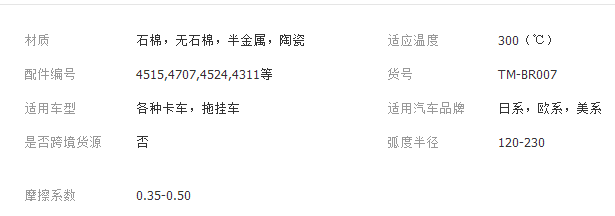 本网页所展示的有关【泰明鼓式制动衬片 摩擦片 可定制加工 量大优惠_ HVAC汽车_泰州市泰明汽车零部件有限公司】的信息/图片/参数等由全球零部件网的会员【泰州市泰明汽车零部件有限公司】提供,由全球零部件网会员【泰州市泰明汽车零部件有限公司】自行对信息/图片/参数等的真实性、准确性和合法性负责,本平台(本网站)仅提供展示服务,请谨慎交易,因交易而产生的法律关系及法律纠纷由您自行协商解决,本平台(本网站)对此不承担任何责任。您在本网页可以浏览【泰明鼓式制动衬片 摩擦片 可定制加工 量大优惠_ HVAC汽车_泰州市泰明汽车零部件有限公司】有关的信息/图片/价格等及提供【泰明鼓式制动衬片 摩擦片 可定制加工 量大优惠_ HVAC汽车_泰州市泰明汽车零部件有限公司】的商家公司简介、联系方式等信息。